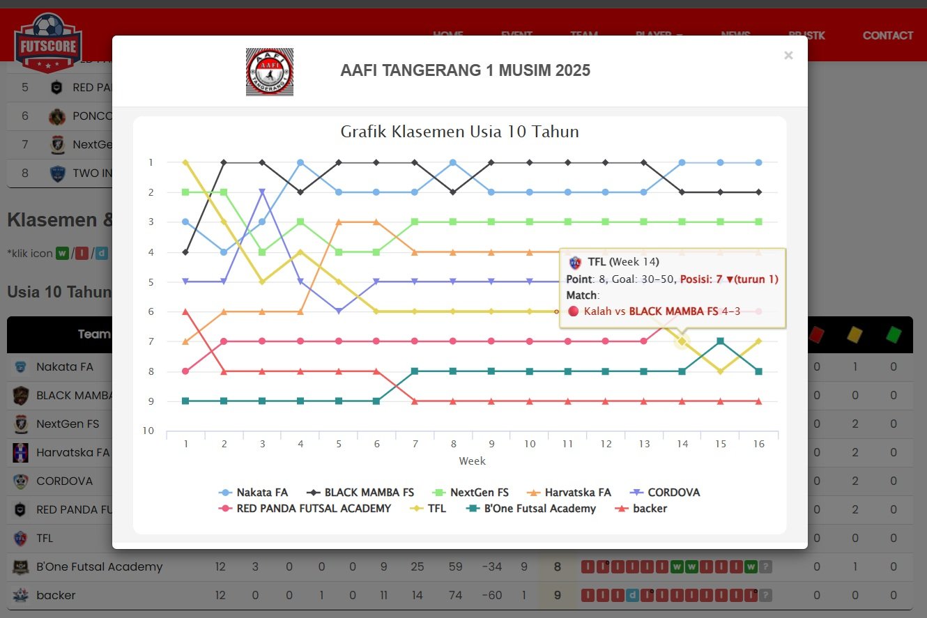 Membantu peserta dan sponsor melihat performa tim dari pekan ke pekan secara jelas.