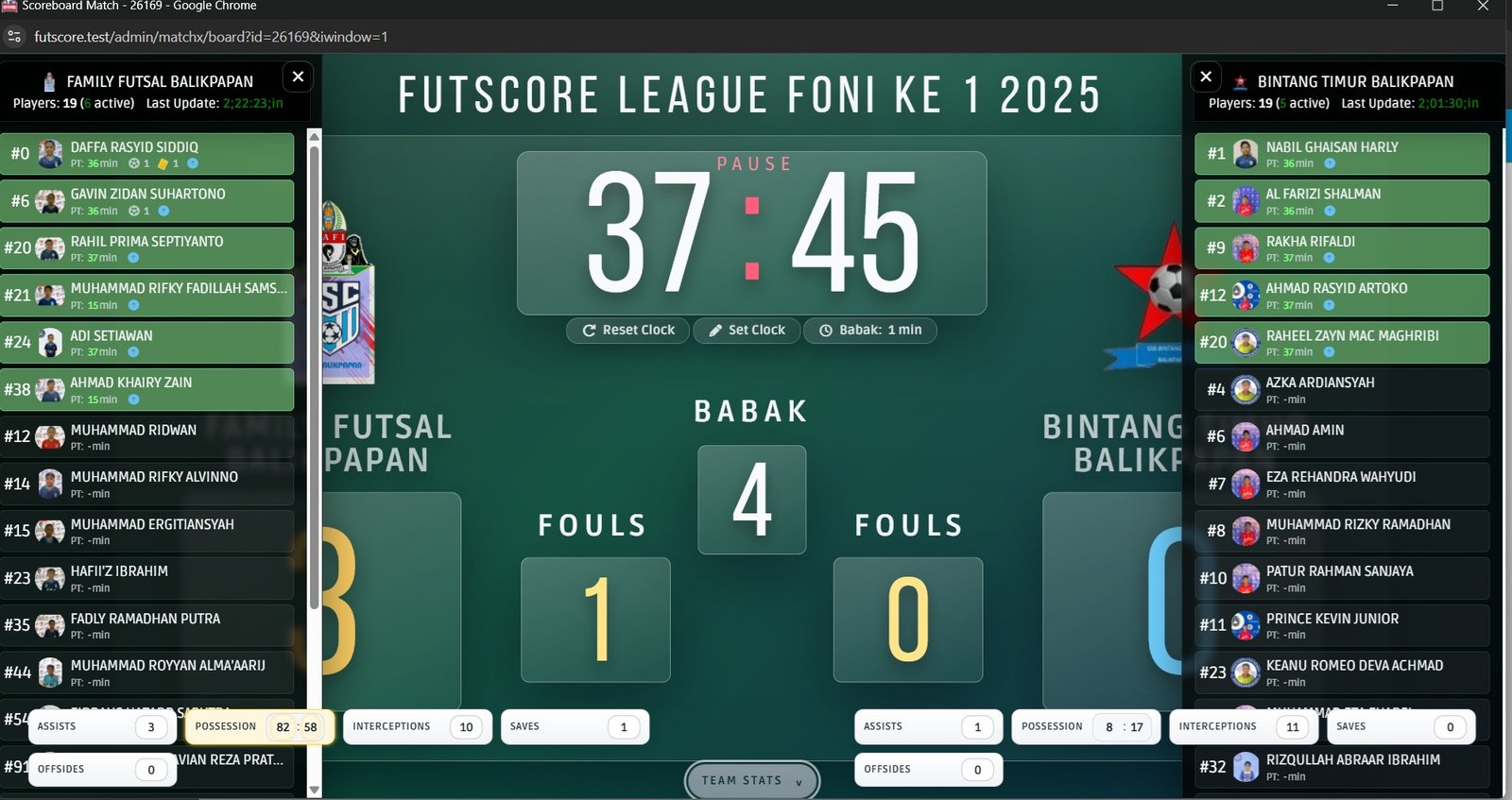 Track record pertandingan tersimpan digital, lengkap dengan menit bermain, performa, dan riwayat tim.